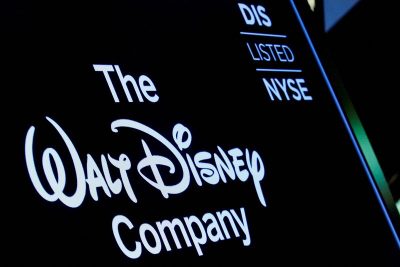 FILE PHOTO: A screen shows the logo and a ticker symbol for The Walt Disney Company on the floor of the New York Stock Exchange (NYSE) in New York, U.S., December 14, 2017. REUTERS/Brendan McDermid/File Photo