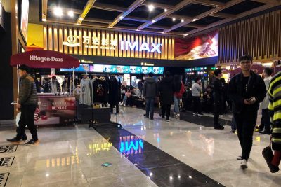 FILE PHOTO: People wait for movie screening at an IMAX theatre inside the Wanda Plaza in Xinxiang, Henan province, China March 23, 2018. Picture taken March 23, 2018. REUTERS/Stella Qiu/File Photo