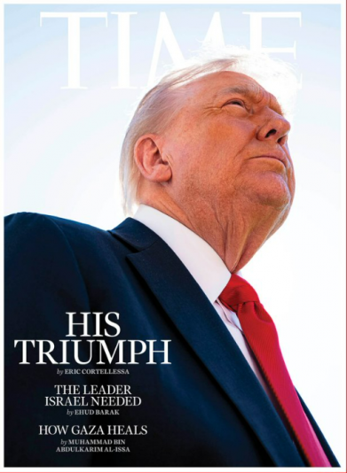 The cover story, titled “His Triumph,” highlights how President Trump successfully brokered the recent Middle East peace deal, involving the ongoing ceasefire and hostage exchange, between Israel and Hamas — a major foreign policy success.
