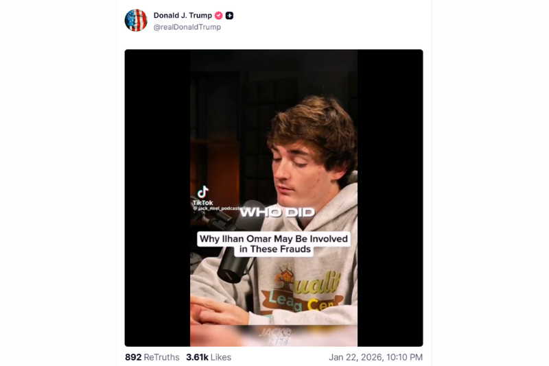 On Truth Social, Trump highlighted once more that the Somali-American lawmaker’s net worth is now “over $30 Million,” while further questioning how she could have legally accumulated such wealth on a congressional salary.