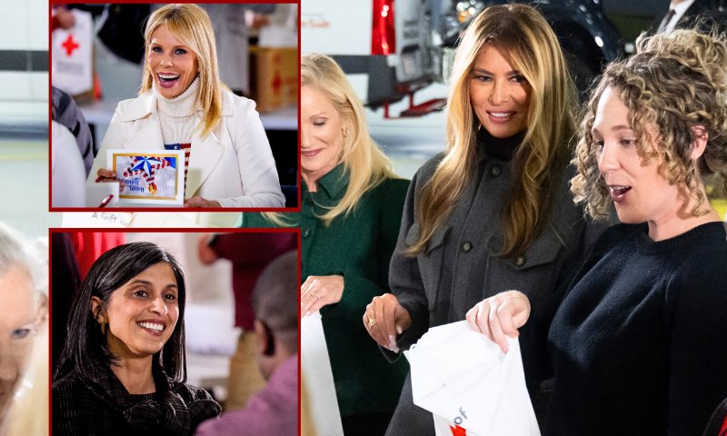 First Lady Melania Trump and Second Lady Usha Vance participated in a heartfelt holiday event at Joint Base Andrews in Maryland at the start of the Christmas season, where they helped assemble holiday care packages for U.S. service members.