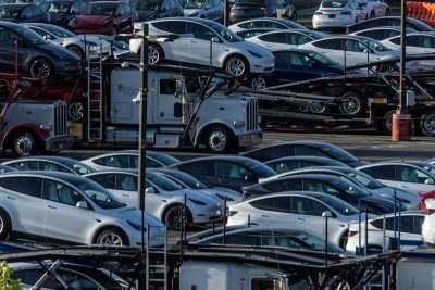 Tesla Model 3 vehicles are seen for sale at a Tesla facility in Fremont, California, U.S., May 23, 2023. REUTERS/Carlos Barria