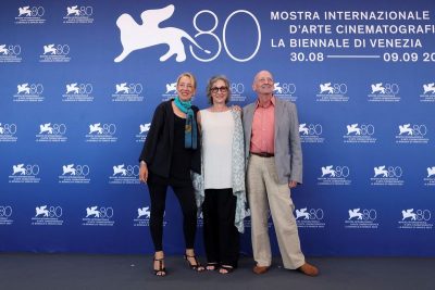 The 80th Venice Film Festival – Photocall for the film “Maestro” in competition – Venice, Italy, September 2, 2023. Jamie Bernstein, Nina Maria Felicia Bernstein and Alexander Bernstein, children of composer and conductor Leonard Bernstein, pose. REUTERS/Yara Nardi