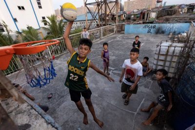 Children play basketball on the rooftop of tenement housing in Tondo, Manila, Philippines, May 17, 2023. Basketball is played everywhere and by almost everyone in the Philippines, which counts the sport as a national obsession along with boxing and beauty pageants. Enthusiasm for the sport is only intensifying ahead of the 2023 FIBA Basketball World Cup, which opens in Manila on Friday. REUTERS/Eloisa Lopez