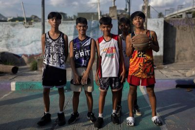 Boys pose for a portrait after playing a community league basketball game in Navotas, Metro Manila, Philippines, August 15, 2023. REUTERS/Eloisa Lopez