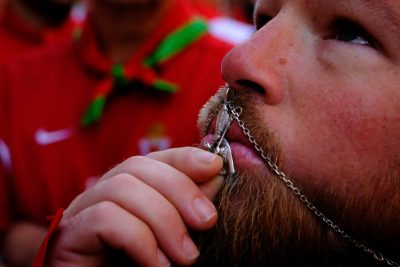 Jordan Reyes, kisses his Saint Fermin pendant, as he asks for the Saint’s protection before running with the bulls on Santo Domingo street during Sanfermines in Pamplona, Spain, July 8, 2023. The famed bull-running festival engulfs downtown Pamplona every July when revellers from around the globe descend upon the northern Spanish city for nine days of adrenaline, sweat and debauchery savoured as freely as the wine flows. Some are drawn to the Sanfermines – as the festival is popularly known – by the timeless prose of Ernest Hemingway who became besotted with the Sanfermines on his first visit, exactly 100 years ago. The bull-running, the bullfighting local experts – and the hedonistic partying – captivated him so deeply that he returned eight times between 1924 and 1959. REUTERS/Susana Vera