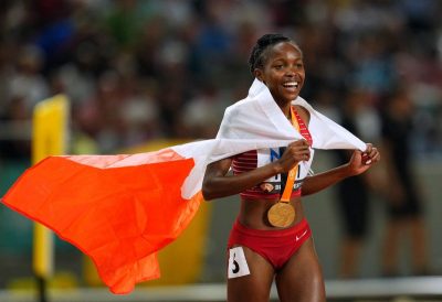Athletics – World Athletics Championship – Women’s 3000m Steeplechase Final – Budapest, Hungary – August 27, 2023 Gold medallist Bahrain’s Winfred Mutile Yavi celebrates after winning the final REUTERS/Aleksandra Szmigiel